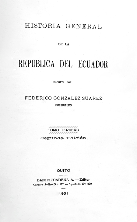 Cita Sugerida : | González Suárez, Federico. 1931. Historia general de la República del Ecuador. Quito: Daniel Cadena A. - Editor. |