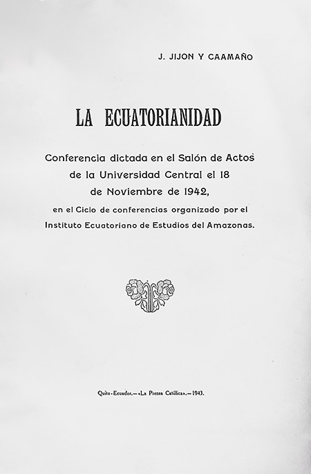 Cita Sugerida : | Jijón y Caamaño, Jacinto. 1943. La ecuatorianidad. Quito: La Prensa Católica |