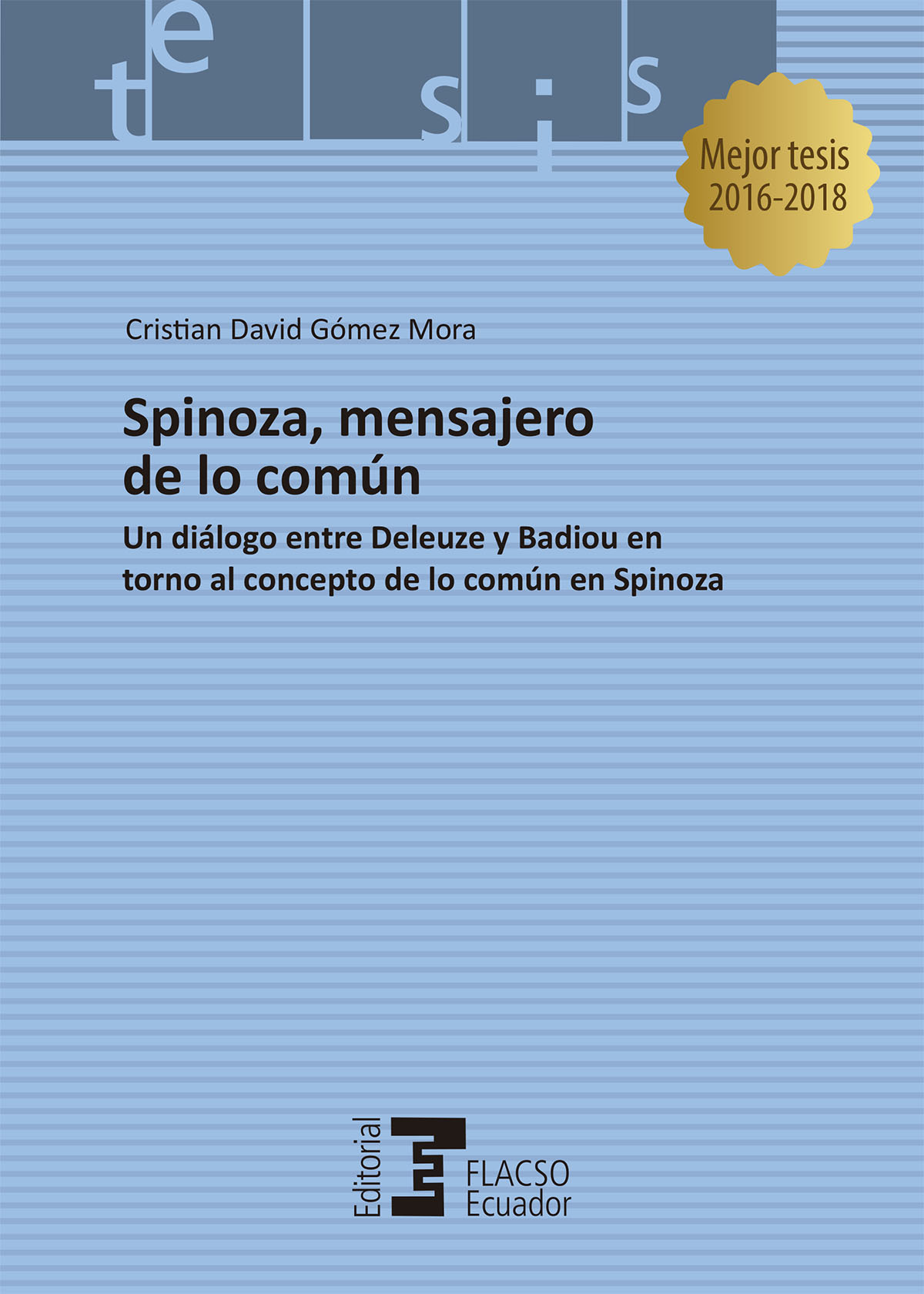 Citation: | Gómez Mora, Cristian David. 2019. Spinoza, mensajero de lo común: un diálogo entre Deleuze y Badiou en torno al concepto de lo común de Spinoza. Quito: FLACSO Ecuador. |