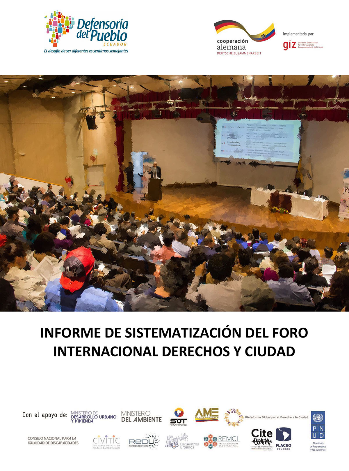 Cita Sugerida : | Ospina, Oscar Raúl y Aimee Maron. 2018. Informe de sistematización del Foro Internacional Derechos y Ciudad. Quito: Deutsche Gesellschaft für Internationale Zusammenarbeit (GIZ). |