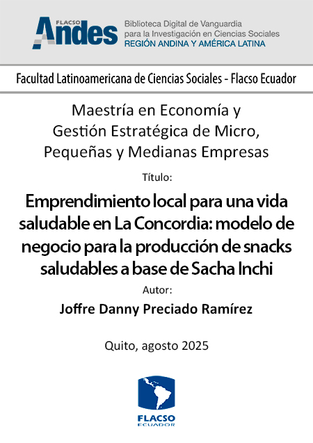 Cita Sugerida : Preciado Ramírez, Joffre Danny. 2025. Emprendimiento local para una vida saludable en La Concordia: modelo de negocio para la producción de snacks saludables a base de Sacha Inchi. Tesis de maestría, Flacso Ecuador.