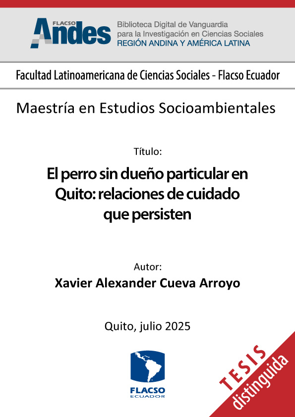 Cita Sugerida : Cueva Arroyo, Xavier Alexander. 2025. El perro sin dueño particular en Quito: relaciones de cuidado que persisten. Tesis de maestría, Flacso Ecuador.