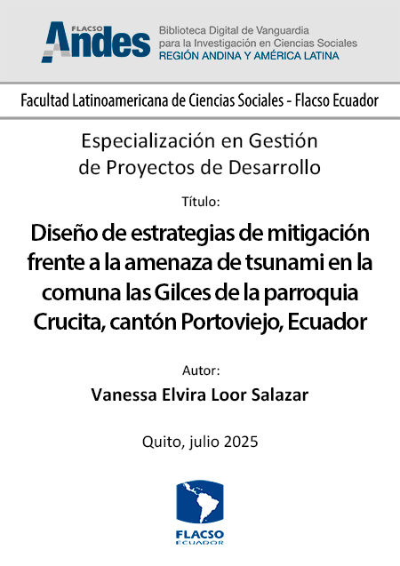 | Cita Sugerida : | Loor Salazar, Vanessa Elvira. 2025. Diseño de estrategias de mitigación frente a la amenaza de tsunami en la comuna las Gilces de la parroquia Crucita, cantón Portoviejo, Ecuador. Tesina de especialización, Flacso Ecuador. |