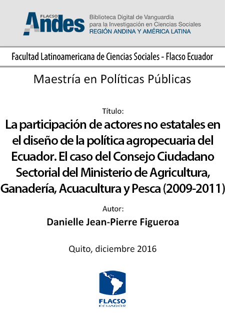Los debates teóricos sobre la responsabilidad social y política en América Latina reconocen el surgimiento de mecanismos de participación ciudadana y control social que promueven la participación de actores no estatales en el diseño de políticas públicas. En este contexto se propone observar el rol de las instituciones como elementos centrales para explicar por qué los gobiernos incluyen a actores no estatales en el diseño de políticas públicas. La presente investigación aborda esta pregunta tomando como caso la participación ciudadana en el diseño del Consejo Ciudadano Sectorial (CCS) del Ministerio de Agricultura, Ganadería, Acuacultura y Pesca (MAGAP) en el Ecuador. La propuesta entiende la designación de Ramón Espinel como Ministro de Agricultura del Ecuador como un elemento determinante en la generación de las condiciones que posibilitan la creación del CCS en el año 2009.