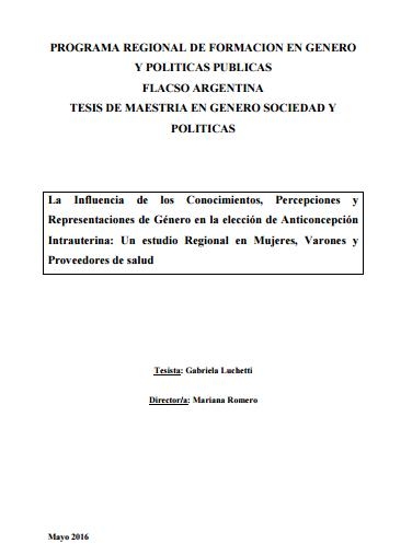 La influencia de los conocimientos, percepciones y representaciones de género en la elección de anticoncepción intrauterina: un estudio regional en mujeres, varones y proveedores de salud