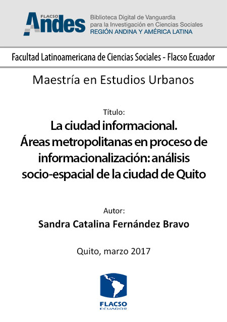 El presente trabajo de investigación constituye un análisis crítico de las diferentes posturas teóricas surgidas a partir del uso masivo de las Tecnologías de la Información y Comunicación, con el fin de entender el concepto de Ciudad Informacional, cuyo principio fundamental es la transformación de la estructura ocupacional y la aparición de un nuevo sector productivo, el cuaternario, que incide en las dinámicas no solo económicas de un país, sino en las dinámicas de flujos intraurbanos y en la calidad de vida de sus habitantes.