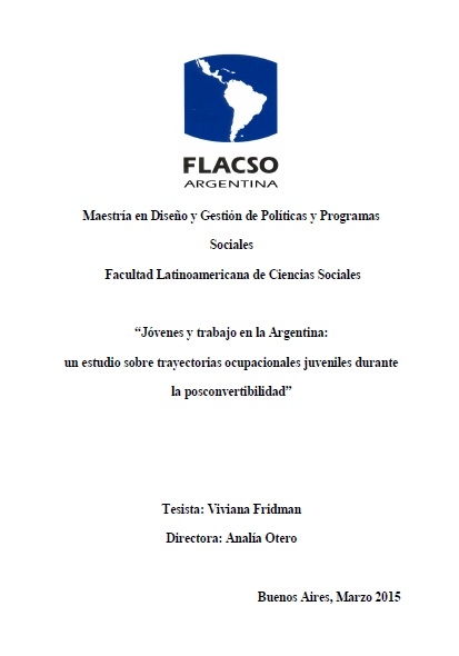A partir del año 2003 se ha desplegado en Argentina un modelo de crecimiento que repercutió de manera favorable sobre la situación del mercado de trabajo. A pesar de ello, los jóvenes se encuentran con considerables dificultades a la hora de conseguir empleo y particularmente para acceder a puestos de calidad, siendo la rotación entre trabajos el principal problema que enfrentan. La desventaja de los jóvenes en el mercado laboral tiene lugar a nivel global, y es por ello que recientemente han proliferado estudios abocados a dicha temática. Varios dan cuenta de la alta intestabilidad de las primeras ocupaciones juveniles pero no existe un acuerdo respecto a cuáles son sus causas ni de qué manera afecta esta inestabilidad en las inserciones futuras. En esta investigación nos proponemos contribuir con los debates vigentes sobre la relación de los jóvenes con el trabajo, a partir de describir las trayectorias ocupacionales que han tenido un grupo de jóvenes durante la última década en nuestro país. Se espera que los resultados del presente estudio puedan ser un material de diagnóstico útil para el diseño y planificación de políticas y programas sociales orientadas hacia la inclusión socio laboral de todos los jóvenes de la Argentina.