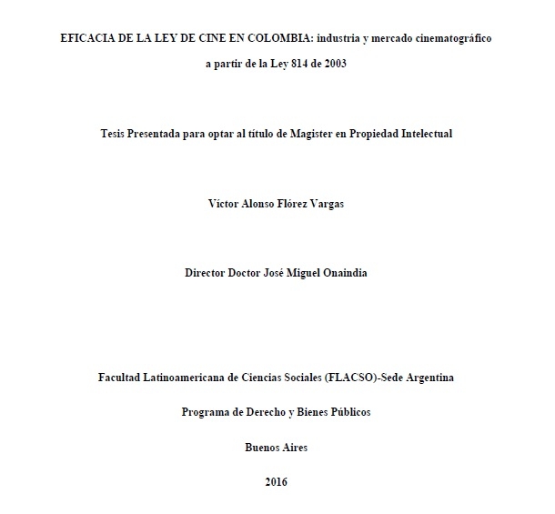 aún la mayoría del dinero invertido en una producción no se recupera ni siquiera en la mitad, de acuerdo con las estadísticas financieras arrojadas por el propio sector. En este marco, la presente investigación tiene por propósito indagar sobre la eficacia de la ley en el mercado cinematográfico colombiano a más de una década de su vigencia, así como las condicionesactuales del mercado y la sociedad colombiana que la condicionan. Así, nos preguntamos si, tomadas en conjunto la Ley 814 del 2003 y las condiciones locales del mercado actual, la industria cinematográfica colombiana es viable económicamente y, de no serlo, en qué radica, entonces, la importancia de la Ley de Cine.