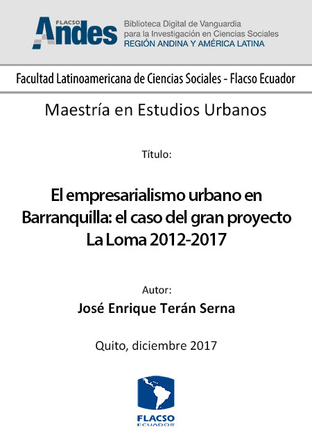 La presente investigación busca analizar y determinar, como la confluencia del empresarialismo urbano y la construcción del gran proyecto urbano La Loma en la ciudad de Barranquilla, se constituye en una nueva forma de gestión y planificación urbana orientada a los intereses del capital –sector inmobiliario– y a las necesidades de la elite –empresarios locales que dirigen la política local– local. A partir de lo anterior, la presente investigación busca esclarecer el siguiente interrogante: ¿Cuáles son los efectos socioespaciales que experimenta el Centro Histórico de la ciudad de Barranquilla, con la confluencia del empresarialismo urbano y la construcción del G.P.U La Loma?