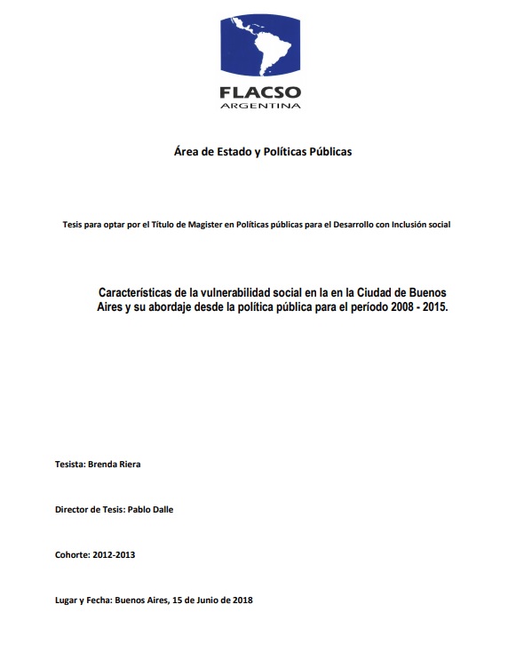 Características de la vulnerabilidad social en la ciudad de Buenos Aires y su abordaje desde la política pública para el período 2008 - 2015