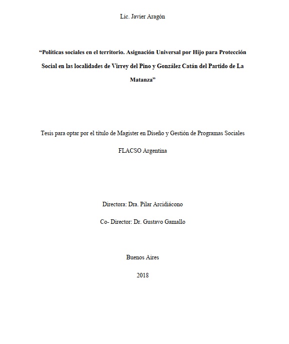 Esta tesis de maestría se propone describir el entramado de la política social, a partir del análisis de la AUH y de las experiencias de las mujeres titulares en torno a esta política y a otros programas sociales. El trabajo de campo fue realizado en las localidades de Virrey del Pino y González Catán del Partido de La Matanza. Se observó que las características del barrio inciden en las condiciones de vida de la población, reduciendo las probabilidades de inclusión material y social. En este contexto de vulnerabilidad, los ingresos que las familias perciben a partir de las transferencias estatales ocupan un lugar importante en la reproducción de la vida cotidiana. Sin embargo, el rol que asume la transferencia en las economías hogareñas varía de acuerdo a la relación que tengan las familias con el mercado de trabajo.