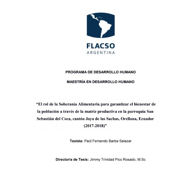 La soberanía alimentaria es un concepto nuevo y en construcción, impulsado por los movimientos sociales, especialmente por la Vía Campesina, en el ámbito internacional. Dicho movimiento defiende que es el derecho de los pueblos el de producir sus propios alimentos, según sus necesidades y condiciones, con apoyo estatal (FAO, 2011). En el Ecuador, el punto de partida de la discusión se estatuye con la aprobación de la Nueva Constitución del 2008. En términos del buen vivir se considera el fortalecimiento y la articulación correlacionada entre la seguridad alimentaria y propuesta de una transformación de la matriz productiva del país. Desde esta perspectiva, el análisis sobre la soberanía alimentaria, en la parroquia San