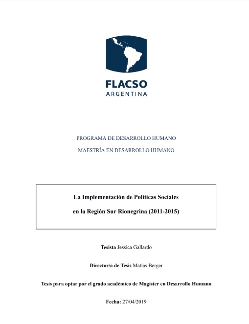 La implementación de políticas sociales en la región sur rionegrina : 2011-2015