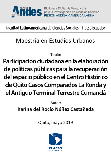 Participación ciudadana en la elaboración de políticas públicas para la recuperación del espacio público en el Centro Histórico de Quito Casos Comparados La Ronda y el Antiguo Terminal Terrestre Cumandá