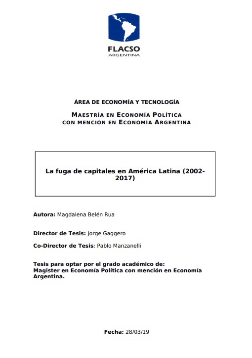 La fuga de capitales ha aumentado significativamente pese al crecimiento económico del que gozó preponderantemente la región entre 2002 y 2015. Los flujos de salida de divisas de las principales economías latinoamericanas crecieron por encima de lo registrado en décadas previas, en simultáneo al proceso de reactivación económica puesto en marcha en gran parte de América Latina. Este trabajo tiene por objetivo estudiar el fenómeno de la fuga de capitales en América Latina, determinando su magnitud y evolución a lo largo de los últimos dieciséis años, tomando como casos de análisis a ocho de las principales economías de la región: Argentina, Brasil, Chile, Colombia, México, Perú, Uruguay y Venezuela. Además, esta investigación se propone analizar si la fuga de divisas de América Latina se encuentra inserta en una problemática regional de orden estructural, teniendo en cuenta las características propias de las economías y los rasgos específicos de cada uno de los países analizados, e indagar acerca de las consecuencias macroeconómicas de este fenómeno.