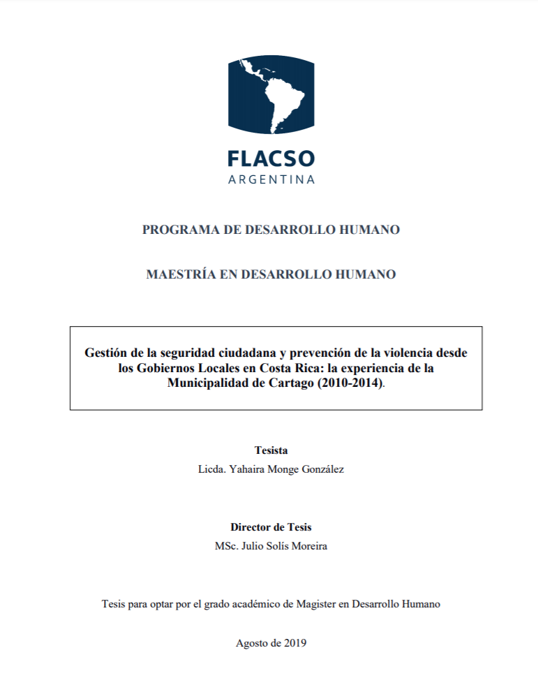Este estudio resulta novedoso en tanto el tema de las capacidades de gestión en materia de seguridad ciudadana por parte de los Gobiernos Locales es de muy reciente data en el país y por tanto no ha sido muy estudiado desde la perspectiva bajo la que se pretende abordar en este trabajo. El conocimiento profundo de las acciones llevadas a cabo por la Municipalidad de Cartago permitirá reconocer los cambios ocurridos, sus logros y los retos a superar para seguir fortaleciendo los procesos sucedidos en el periodo de estudio. En ese sentido será en sí mismo una especie de radiografía y por tanto un instrumento que permita replantear acciones que se encuentran en marcha o bien plantear nuevas acciones a partir de sus propios intereses, necesidades y aspiraciones.