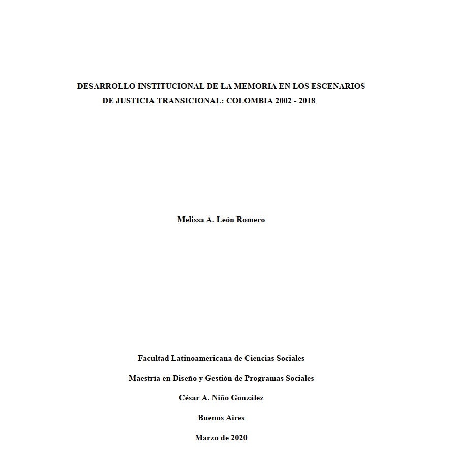La construcción de memoria en un escenario de posconflicto juega un papel determinante en los procesos de reconciliación de una sociedad e implica la participación de múltiples actores. En el caso de Colombia, durante el periodo 2002 a 2018, los cambios radicales en las posturas de gobierno frente a la existencia de un conflicto armado interno y la existencia de marcos normativos de justicia transicional fueron determinantes para el desarrollo de la institucionalidad para la construcción de memoria. Este trabajo presenta una aproximación a este desarrollo institucional a través de la revisión de la Ley de Justicia y Paz y la Ley de Víctimas, las posiciones de los gobiernos de turno frente al conflicto y el papel que juegan las víctimas en este entramado. Como resultado se podrá observar que las instituciones creadas para el desarrollo de la memoria durante este periodo se fortalecieron e hicieron frente al vaivén de la política, a leyes que lesionaban los derechos de las víctimas y al propio dinamismo y pluralismo de la memoria.