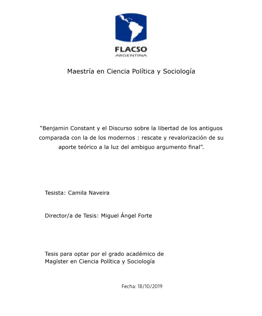 específica del aspecto ambiguo de la obra de Benjamin Constant: el sorpresivo giro que da su argumentación hacia el final de una de sus más conocidas contribuciones, el Discurso sobre la libertad de los antiguos comparada con la de los modernos. Dado que este particular y discordante argumento es el objeto del presente trabajo, el mismo comenzará analizando la relación entre la obra de Benjamin Constant y la teoría producida por Isaiah Berlin acerca de los dos tipos de libertades. Además de que el