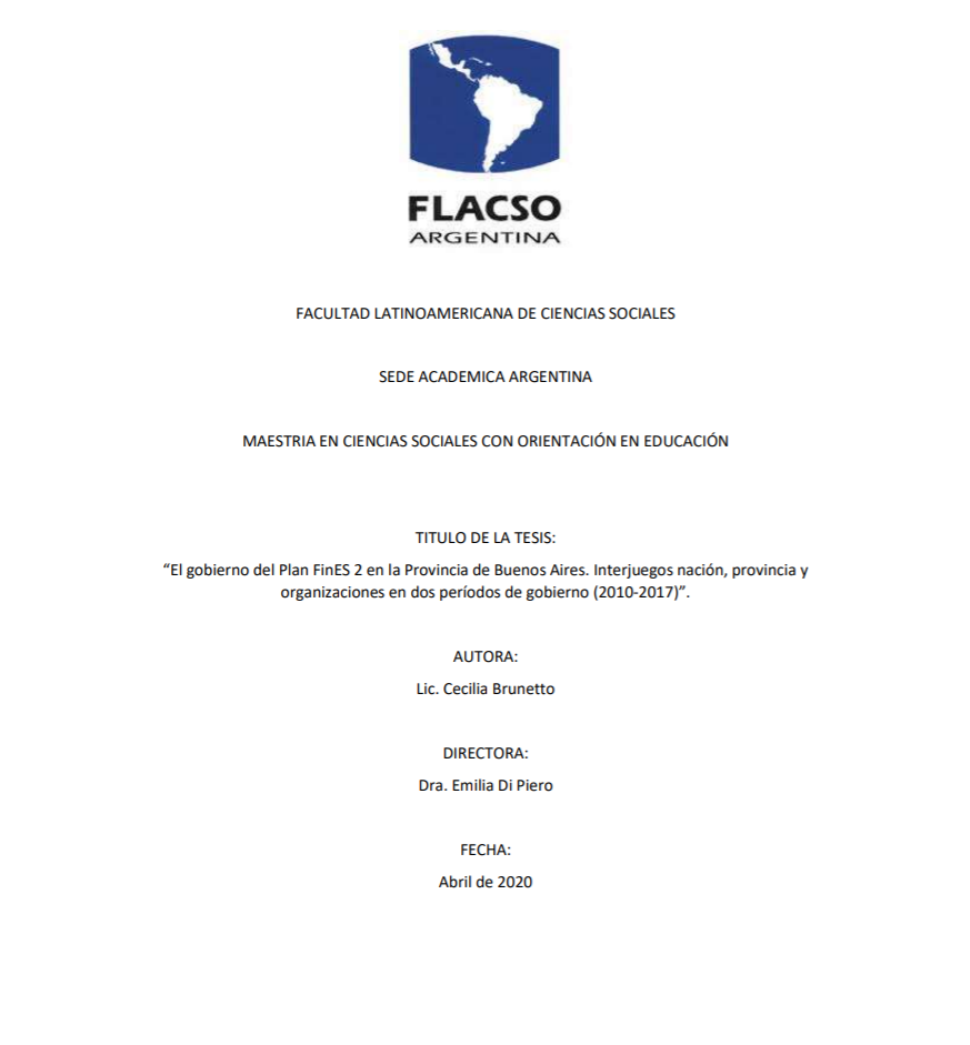 entre los años 2010 y 2017. Para ello, reconstruimos las tramas de interacciones en torno a la formulación y la implementación del Plan FinES 2 como política de terminalidad educativa en la PBA considerando los antecedentes, las normativas, el gobierno educativo y los actores e instituciones involucrados en ambas gestiones de gobierno.