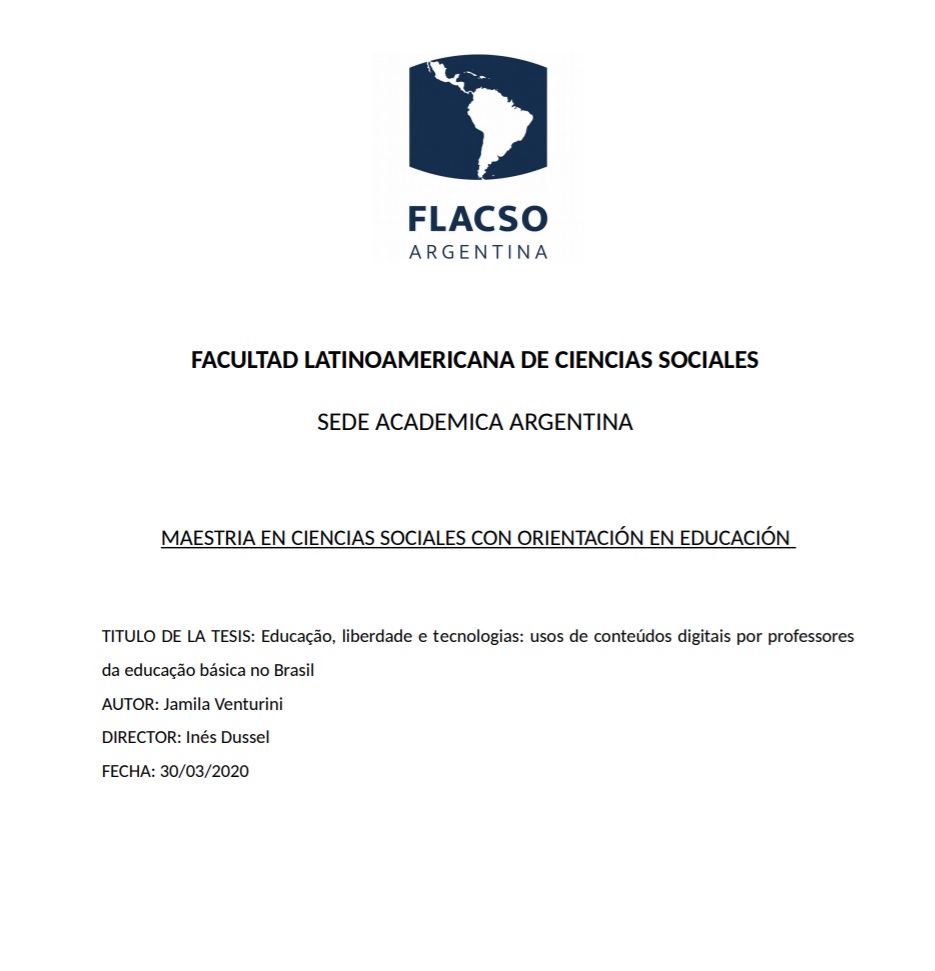tempo para a preparação das aulas; (ii) o segundo se refere à influência dos direitos autorais nas práticas de acesso, uso e distribuição de conteúdos por parte de professoras e professores e (iii) o terceiro trata da centralidade das tecnologias na mudança das práticas pedagógicas e o fato de que os docentes deveriam se adaptá-las às novas tecnologias. Concluímos que a seleção de conteúdos digitais é orientada por necessidades e abordagens pedagógicas que seguem sendo em grande medida pautadas por políticas educativas nacionais, pelo projeto da escola, pelas práticas de cada docente e sua experiência em responder à diversidade de perfis dos estudantes – o que não impede seu uso criativo para melhor cumprir com as diretrizes e objetivos do currículo nacional para além do livro didático. Na tentativa de trazer nuances à discussão, buscamos também historicizar o conceito de REA, particularmente no que se refere à discussão sobre educação aberta, e as propostas de “educação para a sociedade do conhecimento” desenvolvidas pelo Banco Mundial, relacionando-as com o avanço do neoliberalismo enquanto teoria políticoeconômica que ganha força principalmente a partir dos anos 70.