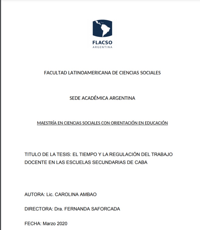 Esta investigación tuvo por objetivo analizar la configuración del tiempo de trabajo de las y los docentes de escuelas secundarias en la Ciudad Autónoma de Buenos Aires, partiendo de la forma en que se estructura su puesto laboral. Para ello se analizaron las políticas y discursos que lo atraviesan, así como las interpretaciones subjetivas de docentes sobre los usos y distribución de los tiempos de trabajo. Se consideró en el análisis tanto una dimensión estructural del trabajo docente y de las políticas educativas, como una subjetiva a partir de las percepciones y sentidos que le atribuyen a la tarea. La posibilidad de analizar al tiempo más allá de su rasgo objetivo, mensurable, permite entender que existe una interpretación subjetiva del mismo que dota de sentido a las experiencias vividas. El análisis sobre las percepciones de profesores y profesoras en