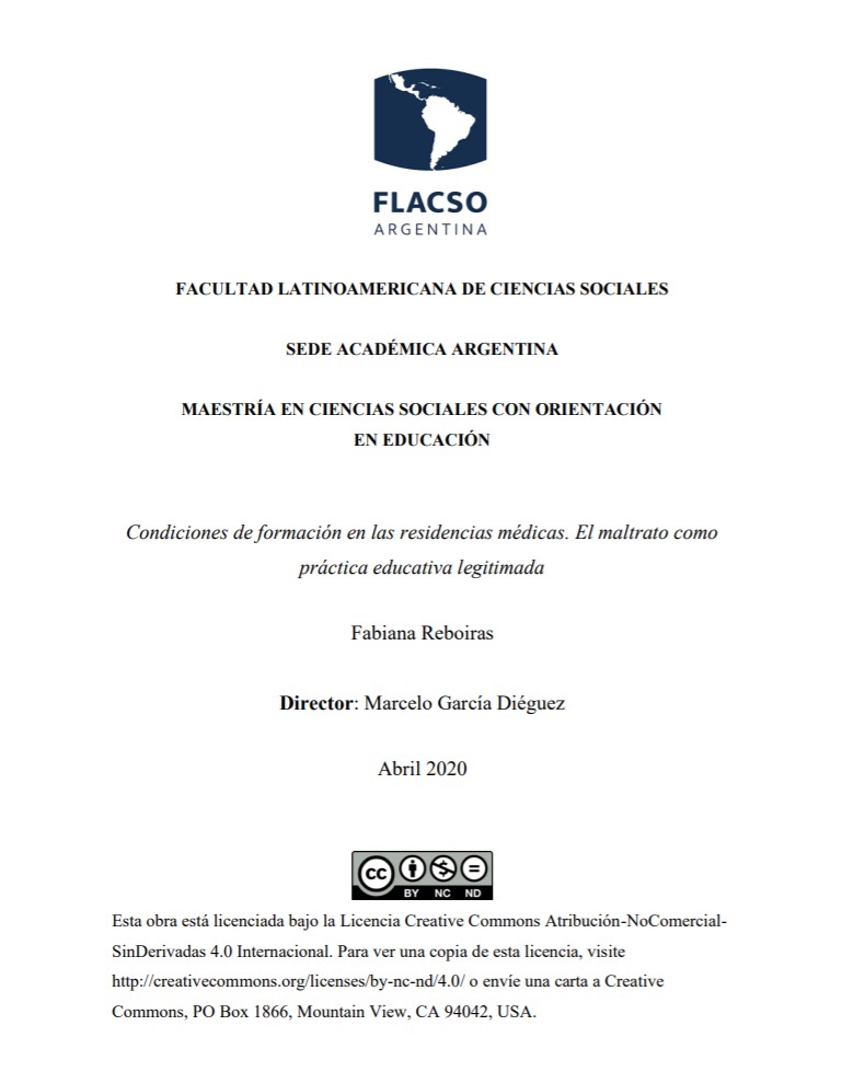 Este estudio se propone dar respuesta a la problemática identificada a nivel internacional acerca de los entornos educativos hostiles en la residencia médica y de las prácticas de maltrato hacia los residentes. Ofrece nueva información sobre las condiciones de formación y el trato dado a los residentes y analiza el problema desde una perspectiva compleja y multifactorial. Cuál es su origen, qué condiciones hacen posible, legitiman y perpetúan las prácticas abusivas e intimidatorias al interior del sistema de residencias. Se realiza un estudio empírico sobre las condiciones de formación y trato dado a los residentes en dos hospitales de la Ciudad de Buenos Aires, a través de un cuestionario semi estructurado de 33 ítems, de elaboración propia, anónimo y confidencial que fue administrado de manera presencial a los residentes de las residencias médicas básicas. Los resultados se analizaron con el paquete estadístico SPSS. Se obtuvo una tasa de respuesta del 52% (98/188) y el 63% fueron mujeres.