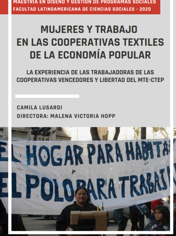 Esta tesis analiza el trabajo de las mujeres en las cooperativas textiles de la economía popular, desde una perspectiva feminista. La experiencia del Movimiento de Trabajadores Excluidos (MTE) y la Confederación de Trabajadores de la Economía Popular (CTEP) en el marco de las cooperativas de trabajo es paradigmática de un nuevo tipo de cooperativas, entre las cuales las del rubro textil han tomado fuerza en los últimos años. A partir del estudio de dos casos de cooperativas promovidas por el MTE-CTEP, intentamos dar cuenta de las distintas dimensiones que definen la experiencia laboral de las trabajadoras que las conforman: condiciones laborales, vinculación entre el trabajo productivo y reproductivo, los sentidos que atribuyen a sus tareas, entre otros. Este análisis busca dar visibilidad a la situación de las trabajadoras de la economía popular, construir nuevas categorías analíticas que permitan aprehender las experiencias laborales y de vida en la economía popular y contribuir al desarrollo de políticas y formas organizativas capaces de garantizar el bienestar de sus destinatarios y destinatarias, desde una mirada crítica que abone a la equidad de género.