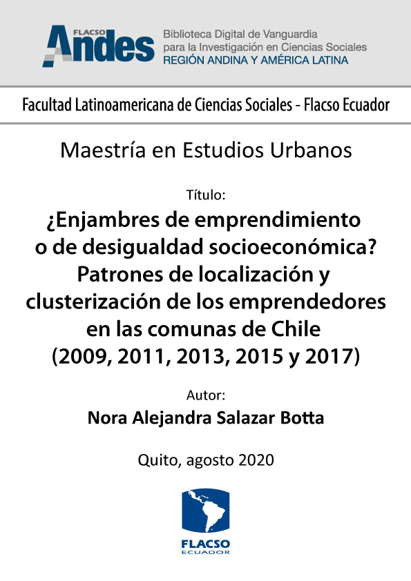 El emprendimiento desde el enfoque de los Estudios Regionales y Urbanos se aborda a través de la geografía económica de la innovación, emprendimiento y creatividad. El emprendimiento urbano se desarrolla en el territorio que aglomera infraestructura de alta tecnología, física y básica para el aumento de la calidad de vida de la población y la mejora de procesos productivos; sin embargo, la investigación académica a nivel regional, muestra que las variaciones espaciales del emprendimiento han persistido en el tiempo (Andersson y Koster 2011; Fritsch y Wyrwich 2013) a nivel del territorio de un Estado, es decir que el territorio del país no sufre mayores cambios en el tiempo.