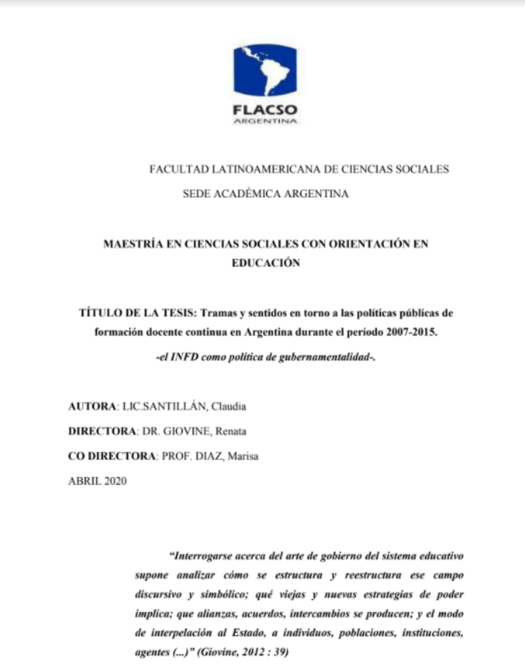 La agenda de políticas educativas en Argentina incluye a la formación de los docentes como una actividad de incidencia decisiva en el avance del sistema escolar. Discursivamente su centralidad es reconocida y, aún en un marco de disidencias políticas y conceptuales, se le asigna un valor de preeminencia por sobre otros componentes que hacen a la construcción de una política educativa de Estado. Sin embargo, los hechos derivados de los relatos oficiales no siempre reafirman este acuerdo tácito ni coinciden en sentidos; en particular cuando se trata de las decisiones referidas a la formación continua y a su corresponsabilidad con prácticas de enseñanza o de gestión educativa. Tal vez la mayor dificultad radique en vincular los para qué y los cómo de las políticas de formación continua con la materialidad de cierto posicionamiento respecto del trabajo docente y la manera de ‘‘hacer escuela’’. Pensar ello la construcción de las políticas públicas y en materia de formación docente continua (FDC), pone de manifiesto la comprensión de nuevos escenarios en los que debe desarrollarse la profesión, sin suponer continuidades de rasgos de enfoques previos al período a tratar. Entendiendo a la definición de creación del Instituto Nacional de Formación Docente (Resolución CFCyE Nº 251/05) como una decisión de política gubernamental que inscribe valor sustantivo al conjunto del sistema formador2, se ha definido como objetivo central para el desarrollo de este trabajo el análisis de la composición cartográfica que hace a la formulación y argumentación de las políticas públicas en materia de FDC durante el período 2006-2015 en Argentina. Esto con la intención, seguramente ambiciosa, no sólo de sistematizar un relato de voces autorizadas y de documentos oficiales, sino de identificar la presencia de aspectos performativos (comunes o irruptivos) para comprender analíticamente desplazamientos y nuevos modos de intervención en las políticas públicas; entendiendo que los mismos denotan cierta matriz común en la materia (más o menos vinculada con la configuración de la carrera docente).