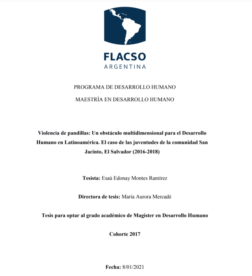 Violencia de pandillas : un obstáculo multidimensional para el desarrollo humano en Latinoamérica : el caso de las juventudes de la comunidad San Jacinto, El Salvador (2016-2018)