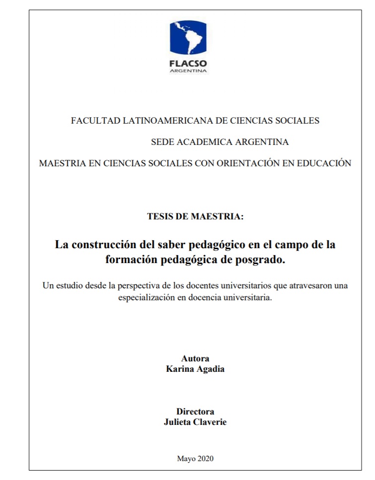 Esta tesis trata de la construcción del saber pedagógico en el campo de la formación de posgrado. Más específicamente es un estudio acerca de las características que adquiere el saber pedagógico desde la perspectiva de los profesores universitarios que transitaron por una especialización en docencia universitaria. El estudio no tiene pretensión de generalización, sino que busca comprender los rasgos que caracterizan al saber pedagógico construido o transformado en dichos trayectos formativos a partir de las percepciones de los docentes acerca de lo que saben y saben decir, de lo que saben hacer y cómo y del saber ser y estar en práctica de la enseñanza universitaria. La estrategia metodológica aplicada fue de carácter cualitativo con fines exploratorios y descriptivos, se utilizaron datos primarios recolectados a través de doce entrevistas en profundidad a docentes universitarios que transitaron por una formación pedagógica de posgrado en Universidades Nacionales de la Argentina. También, y a modo de triangulación, se han incorporado cuatro Relatos de Experiencia elaborados por algunos docentes entrevistados que permitieron profundizar la comprensión de las formas que adquiere el saber pedagógico construido o trasformado por los profesores en el lenguaje narrativo de la práctica en el aula universitaria. Como conclusión general del estudio podemos señalar que el saber pedagógico construido por los docentes universitarios a partir de su paso por la formación pedagógica de posgrado reviste formas como: “pone cara al fantasma “en tanto característica conceptual y comprensiva; “saca del lugar aprendido” en tanto es movilizante y reflexivo; “da forma a la enseñanza” a través de la autoría metodológica y poiética de la práxis; “ hace al docente universitario” en tanto es identitario y autorizante y “consolida la práctica de enseñanza y docente como práctica profesional”.