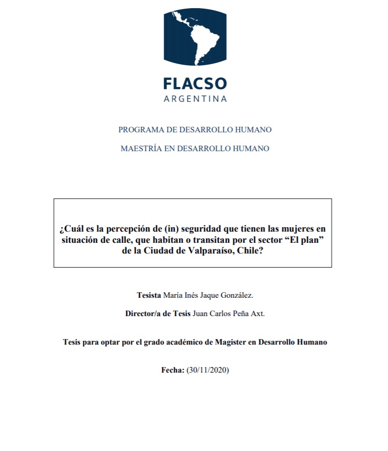 Delimitamos nuestra área de análisis en la parte plana de Valparaíso, que corresponde al centro de la ciudad, este sector es nominado históricamente como “el plan”. El interés del presente análisis corresponde a conocer esta ciudad desde la percepción de seguridad de sus habitantes, principalmente, de las mujeres en Situación de Calle que la habitan o transitan. Indagamos en el factor de seguridad, como un determinante del tránsito o uso de la ciudad y sus espacios públicos, por parte de los distintos tipos de personas y con esto, fortalecer el tejido social. En este sentido, nuestra pregunta de investigación es: ¿Cuál es la percepción de (in) seguridad que tienen las mujeres en situación de calle, que habitan o transitan por el sector “El plan” de la Ciudad de Valparaíso?
