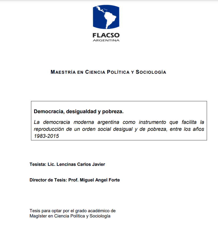 La desigualdad y la reproducción de la pobreza en Argentina, en el periodo considerado (1983-2015), tiene un enfoque económico orientado a unidades conceptuales de análisis como la distribución de Ia riqueza, los ingresos o el acceso a un empleo pero también considera a la democracia y sus diferentes enfoques como parte de un orden social desigual global.
