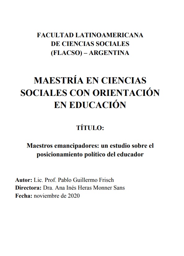 Este trabajo de tesis estudia el posicionamiento político del educador a partir del análisis de algunas dimensiones de las prácticas de la enseñanza que comprenden el sentido ideológico y pedagógico asignado al trabajo docente; el lugar otorgado a la realidad, el mundo y la vida en los procesos de enseñanza y aprendizaje; las modalidades de construcción de climas y vínculos en el ámbito escolar y las especificidades que presenta la reflexión sobre las propias prácticas de la enseñanza. Con ese objetivo se estudian las obras de algunos educadores cuyas prácticas se consideran emancipatorias en virtud de sus formas de trabajar en el aula. Se propone así una construcción analítica que integra los aportes teóricos y prácticos de distintas corrientes educativas. Se plantea entonces una determinada forma de vincular la teoría y la práctica en relación al objeto de conocimiento construido, enfocada en los procesos concretos y situados de enseñanza y aprendizaje para teorizar a partir de ellos. Las preguntas de investigación, el encuadre conceptual y el trabajo con los autores y textos seleccionados han sido abordados a partir de lo que se ha registrado a lo largo de una década de trabajo en distintas instancias del sistema educativo.
