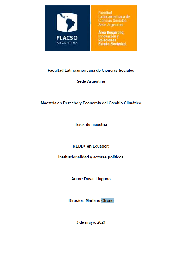 REDD+ en Ecuador : institucionalidad y actores políticos