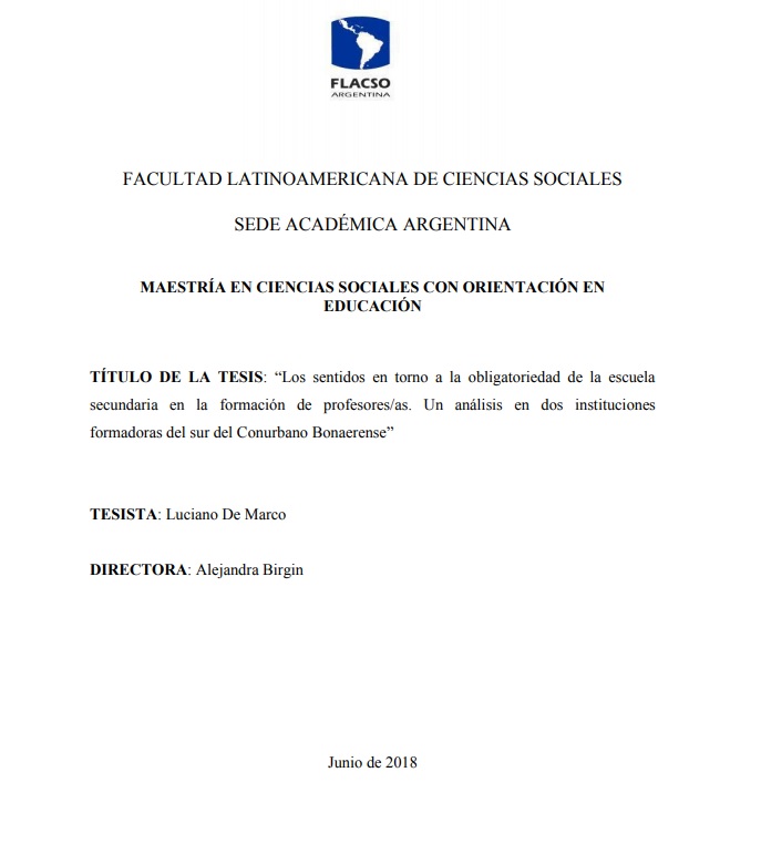 Esta investigación explora los sentidos acerca de la obligatoriedad de la escuela secundaria que construyen los/as estudiantes de profesorado en el marco de la obligatoriedad de la escuela secundaria sancionada por la Ley de Educación Nacional en 2006 y que implicó la implementación de políticas educativas en diferentes planos y escalas mediante las cuales se intentó “universalizar” este nivel educativo. La investigación se realizó en dos instituciones formadoras del sur del Conurbano Bonaerense (un profesorado dictado en una Universidad Nacional y otro en un Instituto Superior de Formación Docente). Desde el paradigma interpretativo y mediante una investigación cualitativa se indagaron los relatos de estudiantes avanzados/as de profesorados del campo de las ciencias sociales. A partir de los datos obtenidos en el campo se arribó, entre otras, a las siguientes conclusiones: Los sentidos en torno a la obligatoriedad de la escuela secundaria se configuran a partir de una negociación densa y compleja con otros sentidos sedimentados que asocian igualdad con homogeneización y obligación con responsabilidad del individuo. Asimismo, estos se vinculan con la forma decimonónica de comprender la obligatoriedad de la escuela primaria y con el carácter selectivo que tuvo el nivel secundario en sus orígenes. Ante ello, los desafíos políticos-pedagógicos que implica la pretensión de universalización del nivel se ligan débilmente con los desafíos didáctico-pedagógicos que subyacen a dicha pretensión. Ambas instituciones formadoras, pese a las amplías diferencias existentes en la propuesta curricular y en especial en el campo de la formación de la práctica profesional, generan condiciones para que durante la práctica docente los/as estudiantes transiten escuelas secundarias ubicadas en contextos denominados “periféricos” o bajo otras modalidades. En algunos casos, circular por esos contextos habilita experiencias que resignifican el trabajo de enseñar y los territorios en donde ejercer la docencia. A su vez, estas resignificaciones construyen condiciones que sensibilizan sobre cuáles son los problemas educativos y los desafíos pedagógicos que subyacen a la obligatoriedad. Por último, los/as estudiantes entrevistados/as expresaron diversos sentidos en torno al trabajo de enseñar que se construyen a partir del vínculo con los saberes disciplinares, pedagógicos y de la práctica docente, imperantes en cada institución y con aquello que definen como lo exigente y lo desafiante de este tipo de tarea. Estas definiciones están atravesadas por la necesidad de explorar alternativas didáctico-pedagógicas diferentes a la clase expositiva y tienen como parámetro las formas en que los/as estudiantes entienden que los/as alumnos/as de escuela secundaria se vinculan con los saberes y las culturas. Ante esto, se encontró un consenso creciente en el uso de la imagen como soporte de la enseñanza y una dificultad ante propuestas que supongan mediaciones con la letra escrita. Esta tesis espera ser un aporte de ideas, interrogantes e insumos sobre los sentidos que se construyen durante la formación docente inicial en torno a la obligatoriedad de la escuela secundaria.