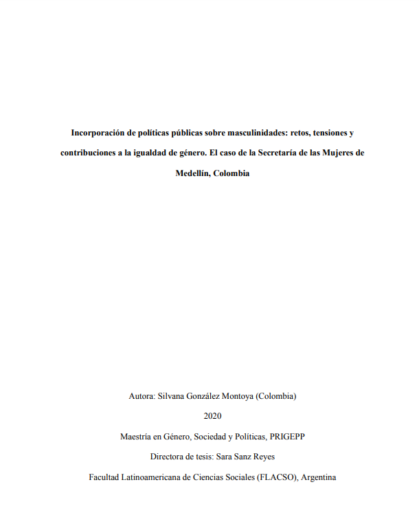 Incorporación de políticas públicas sobre masculinidades : retos, tensiones y contribuciones a la igualdad de género. El caso de la Secretaría de las Mujeres de Medellín, Colombia