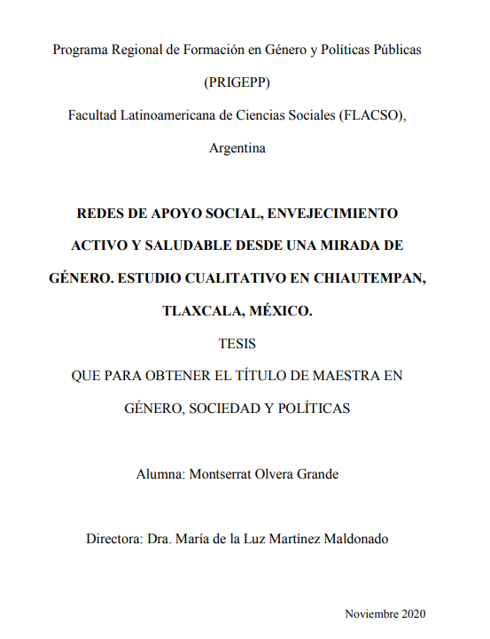 El objetivo de este trabajo es Identificar las redes de apoyo social y comprender los significados y valoraciones que tienen para las personas mayores 60 años del municipio de Chiautempan, Tlaxcala, en el marco del Envejecimiento Activo y Saludable. El análisis de las redes de apoyo social en la vejez con perspectiva de género, invita a explorar roles, subjetividades, experiencias, recursos y oportunidades para hacer frente a las reconfiguraciones de género, y a laslimitaciones, cambios y fortalecimiento de las redes de apoyo social en la vejez.