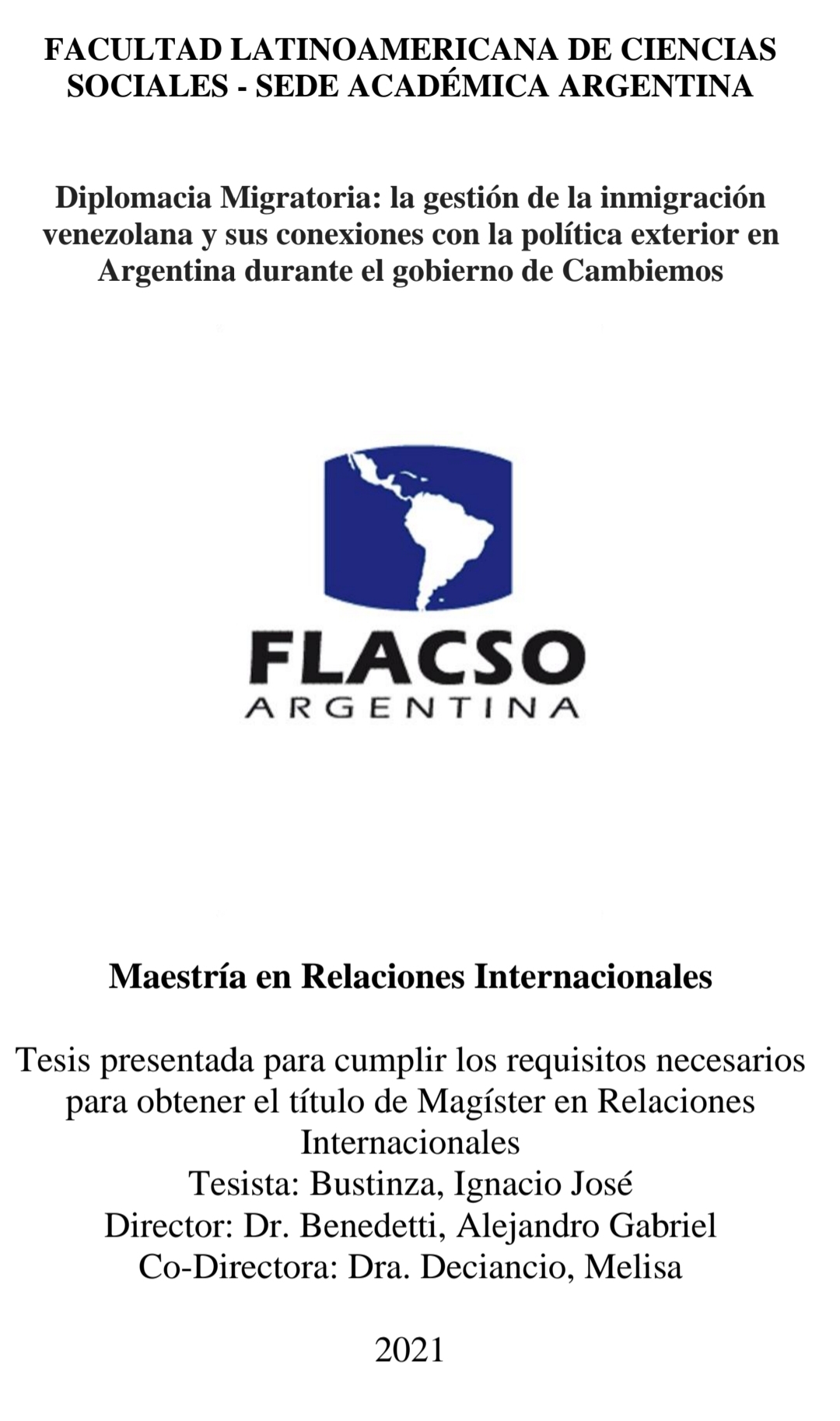 Diplomacia migratoria : la gestión de la inmigración venezolana y sus conexiones con la política exterior en Argentina durante el gobierno de Cambiemos