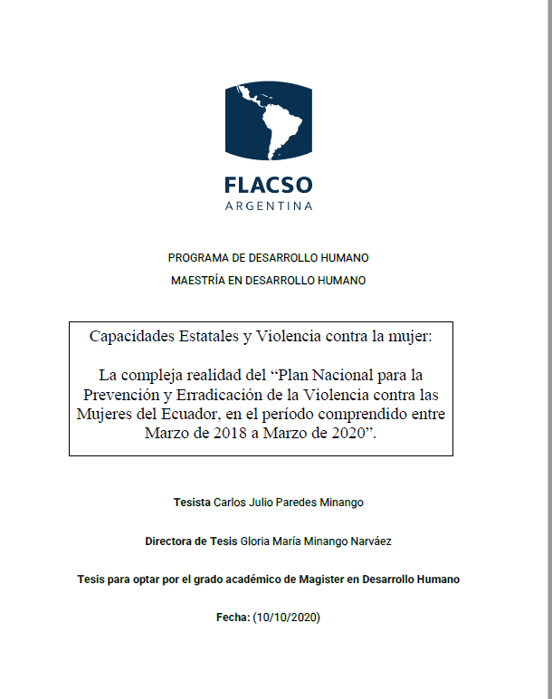 El estudio de las capacidades estatales frente a la violencia contra las mujeres resulta un tema complejo a ser abordado. En América Latina y el Caribe la violencia contra las mujeres se la consideraba como un asunto privado, en el cual el Estado no debía interferir y por ende no se razonaba este problema social como un tema para ser tratado a nivel de normativa y política pública; Ecuador no fue la excepción. En base a esta realidad la pregunta central de investigación se formula enfatizando a las capacidades estatales como medios que permitan responder a la misma. Se plantea así: ¿Cuáles son las capacidades estatales de la Secretaría de Derechos Humanos que impiden la formulación del Plan Nacional de Prevención y Erradicación de la Violencia contra las mujeres durante el período comprendido entre marzo 2018 a marzo 2020 en el Ecuador?