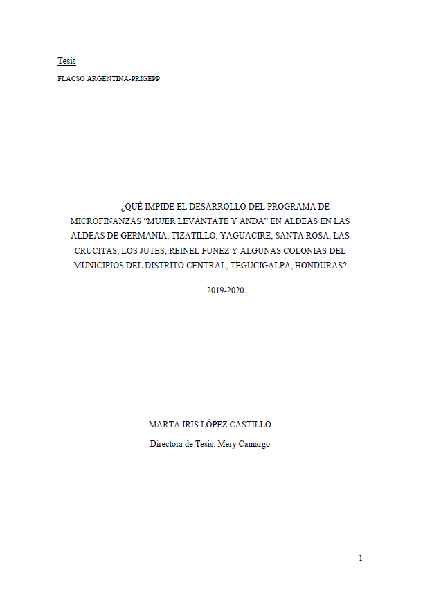 La presente tesis es una evaluación intermedia del proyecto Microfinanza Mujer levántate y anda que se llevó a cabo entre los meses de enero de 2019 a noviembre de 2020. La investigación es exploratoria-descriptiva y se enmarca desde la perspectiva de género y la teoría sociológica fenomenológica según la interpretación de Alfred Schutz: “los actores crean, en efecto, la realidad social, pero lo hacen según pautas de acción socialmente determinadas que los constriñen (Ritzer, 1993, p.365). Y la metodología de Investigación Acción Participativa (IAP) y la Guía de evaluación de programas y proyectos con perspectiva de género, derechos humanos e interculturalidad orientaron las preguntas utilizadas durante la aplicación de las técnicas de observación participante, grupos focales, entrevistas y la encuesta realizada por Formularios de Google. La Fundación Internacional del Buen Pastor por medio de su Oficina en Costa Rica- Oficina para el desarrollo de la misión Centroamérica ODM CA- facilitó la información documental requerida. Ahora bien, las visitas de campo, las entrevistas, la encuesta, y las reuniones se coordinaron con el equipo del proyecto en Honduras. No se logró cumplir con los plazos establecidos en el cronograma inicial porque hubo que dar tiempo para ir creando confianza en las participantes; debido al alto índice de violencia en algunas aldeas; poca participación de las mujeres a la reunión mensual y reuniones irregulares con miembros del equipo.