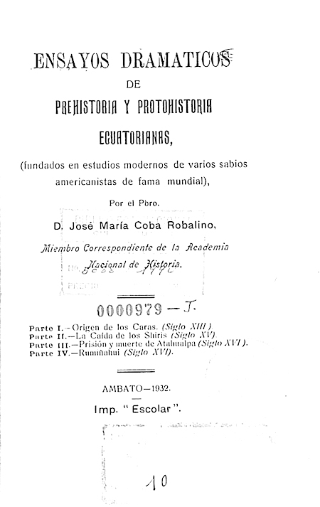 Ensayos dramáticos de prehistoria y protohistoria ecuatorianas : fundados en estudios modernos de varios sabios americanistas de fama mundial