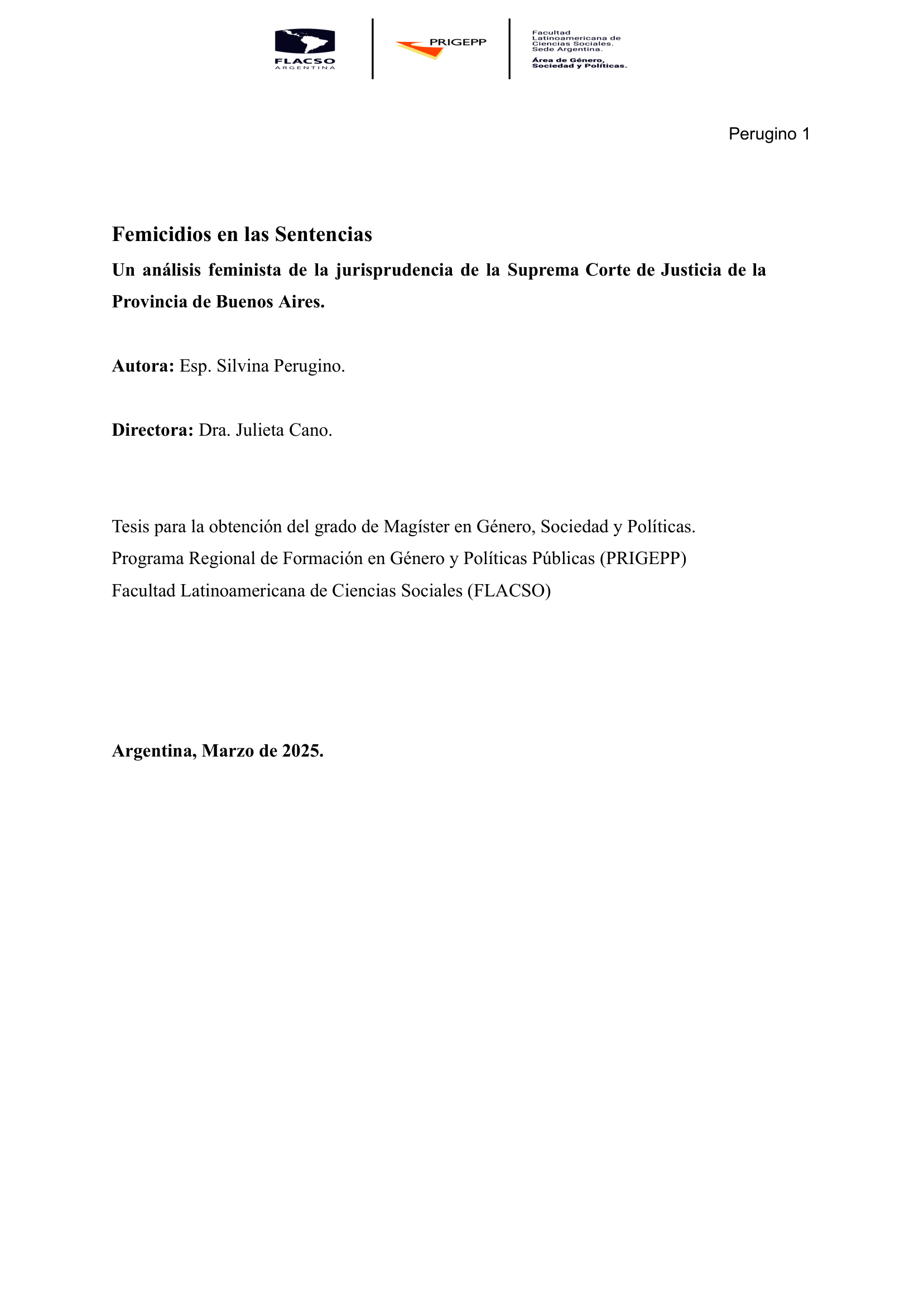 Esta investigación se centra en el análisis de contenido de la jurisprudencia de la Suprema Corte de Justicia (SCJBA) de la Provincia de Buenos Aires en casos de Femicidios, tipificados por el art. 80 inc. 1° y 11° del Código Penal Argentino entre los años 2021 y 2023. Se utiliza un método cualitativo, sobre el corpus de sentencias, y se realiza un estudio a partir de la perspectiva de género. El análisis se realiza aplicando una matriz de análisis de sentencia, creada a los fines de la presente investigación; y que se nutre no solo de la teoría feminista, sino también de los instrumentos iberoamericanos existentes utilizados para dotar de perspectiva de género la redacción de sentencias. El trabajo busca indagar sobre la permeabilidad de la SCJB para incorporar la perspectiva de género, aplicando el marco normativo existente, y en especial la recepción de la figura del femicidio; además busca contribuir con la herramienta de la matriz, para el monitoreo de sentencias en clave feminista.