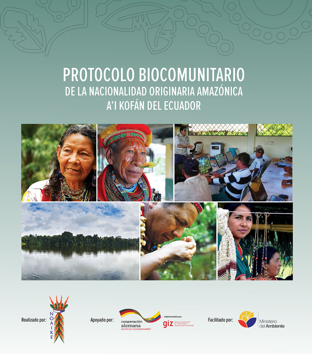 La Nacionalidad Originaria Amazónica A’I Kofán del Ecuador presenta el Protocolo Biocomunitario de su pueblo, elaborado con el objetivo de promover el manejo y la comercialización de los productos derivados de la biodiversidad existente en su territorio. Este Protocolo es un instrumento que será utilizado por la Nacionalidad A´I Kofán para comunicar a empresas, organizaciones y otros actores externos que tengan interés en adquirir esos bienes, su relación con el entorno natural, basada en el respeto a la naturaleza, la cultura y los modos de vida de la sociedad A’I Kofán. Este Protocolo nace de la necesidad de las comunidades por generar propuestas de desarrollo económico sustentable propias de su Nacionalidad, potenciando el trabajo y conocimientos sobre los recursos naturales existentes en su territorio.