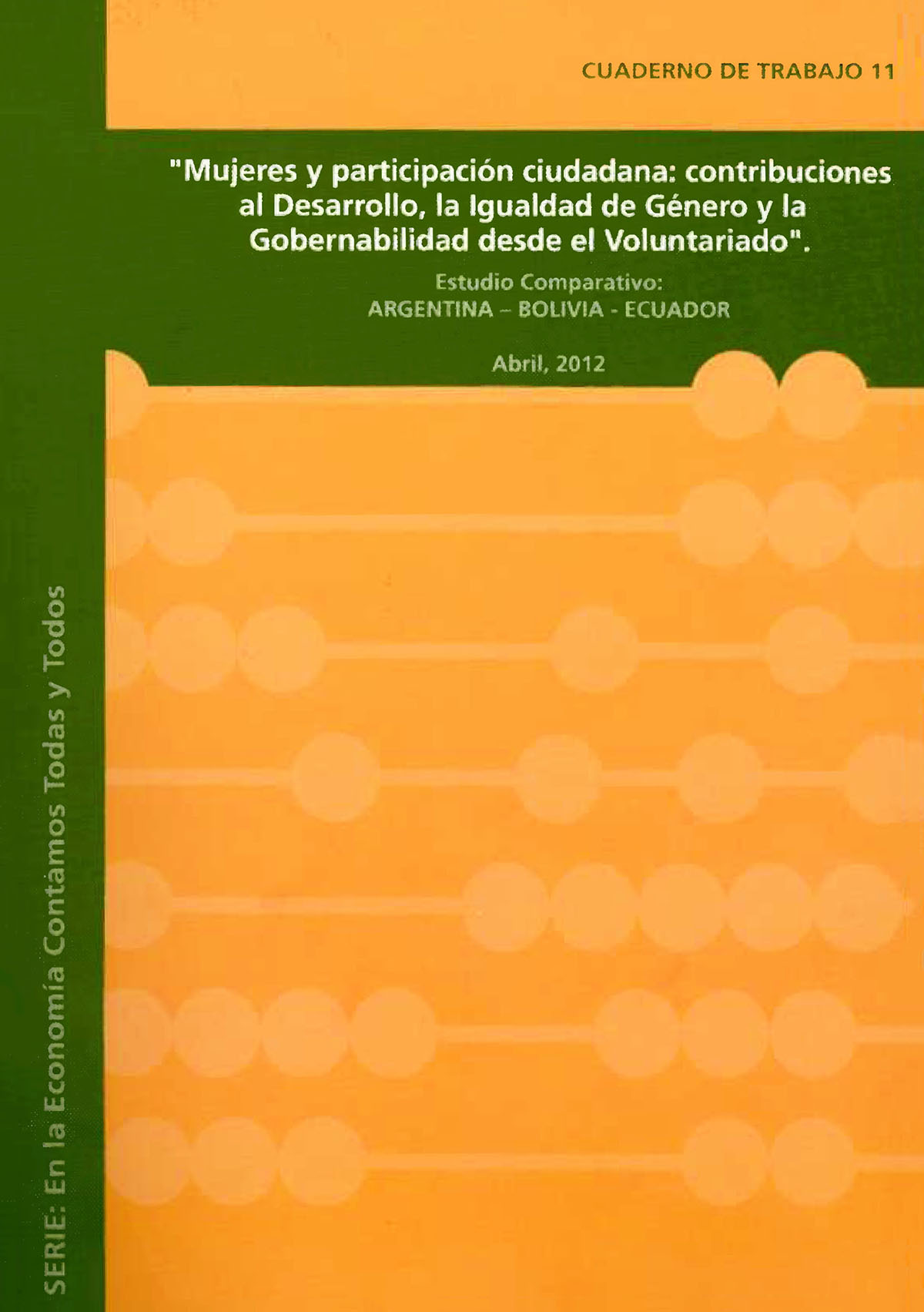 Mujeres y participación ciudadana: contribuciones al desarrollo, la igualdad de género y la gobernabilidad desde el voluntariado. Estudio comparativo Argentina-Bolivia-Ecuador