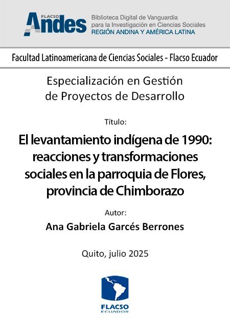 El presente estudio tiene como objetivo analizar las reacciones y transformaciones sociales, políticas y culturales generadas por el levantamiento indígena de 1990 en la parroquia de Flores, provincia de Chimborazo. Para ello, se exploran las dinámicas comunitarias antes, durante y después del levantamiento, el papel de la Iglesia Católica como mediadora y promotora del empoderamiento indígena, y la representación mediática del movimiento en periódicos locales. La investigación se enmarca en un contexto más amplio de luchas por la autodeterminación y la justicia social en Ecuador, con especial énfasis en la reconfiguración identitaria de los pueblos indígenas.