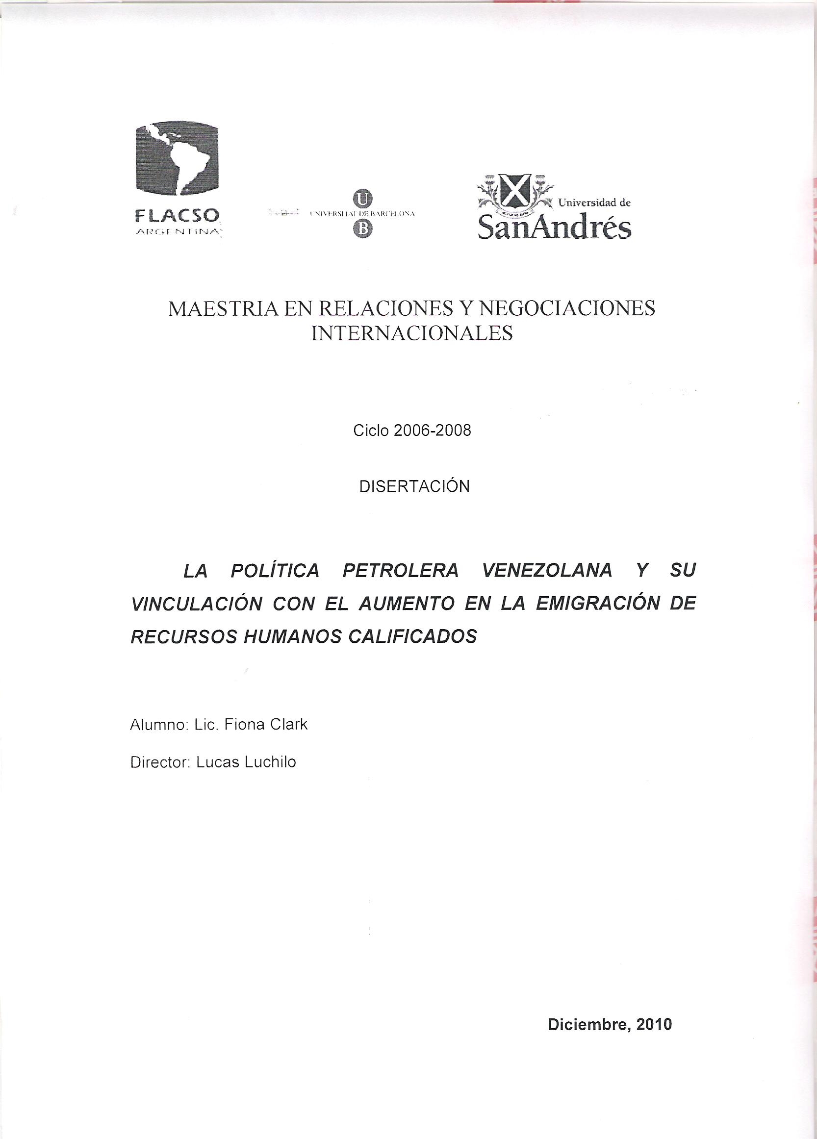 18.000 empleados de Petróleos de Venezuela (PDVSA), muchos de los cuales eventualmente emigraron. Como apoyo a la investigación, se realizó una exploración de campo, la cuál consistió en entrevistas efectuadas a emigrantes de la industria petrolera. Los resultados de dicho sondeo arrojaron datos significativos que serán presentados y analizados en la tercera y última parte del trabajo. En dicha sección también se analizaran en detalle las experiencias de estas personas, dando respuesta a interrogantes como las siguientes: ¿cuáles fueron las razones que los motivaron a dejar su país?, ¿cómo ha sido su desarrollo profesional?, si tuvieran la oportunidad, ¿regresarían a Venezuela?, entre otras preguntas. Finalmente, este trabajo concluye estableciendo posibles vínculos entre la nueva política petrolera venezolana y el aumento en la migración calificada en Venezuela; y por sobre todo efectúa un llamado a la reflexión sobre los efectos del aumento de la emigración de recursos humanos calificados en la industria petrolera.