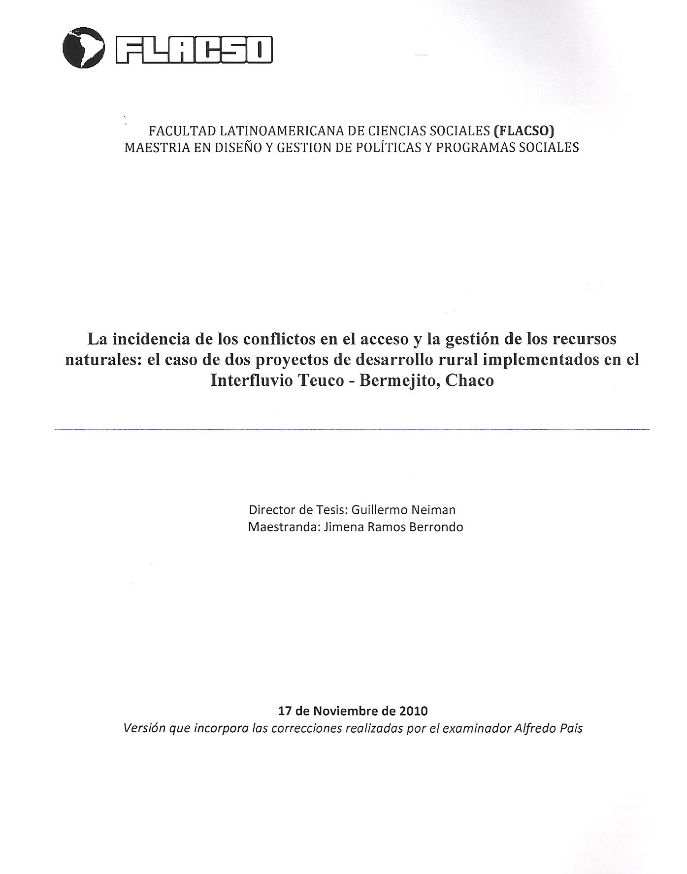 Los objetivos específicos de esta investigación son comprender en qué consistieron los conflictos entre los actores que participaron en el Proyecto de Desarrollo Integrado Interfluvio Teuco - Bermejito (PDITB) y el Proyecto Bosques Tropicales (PBT), y explicar cómo estos conflictos incidieron en el acceso y la gestión de los recursos naturales por parte de los criollos y los tobas. Metodológicamente, se hizo uso de diversas técnicas cualitativas como el análisis