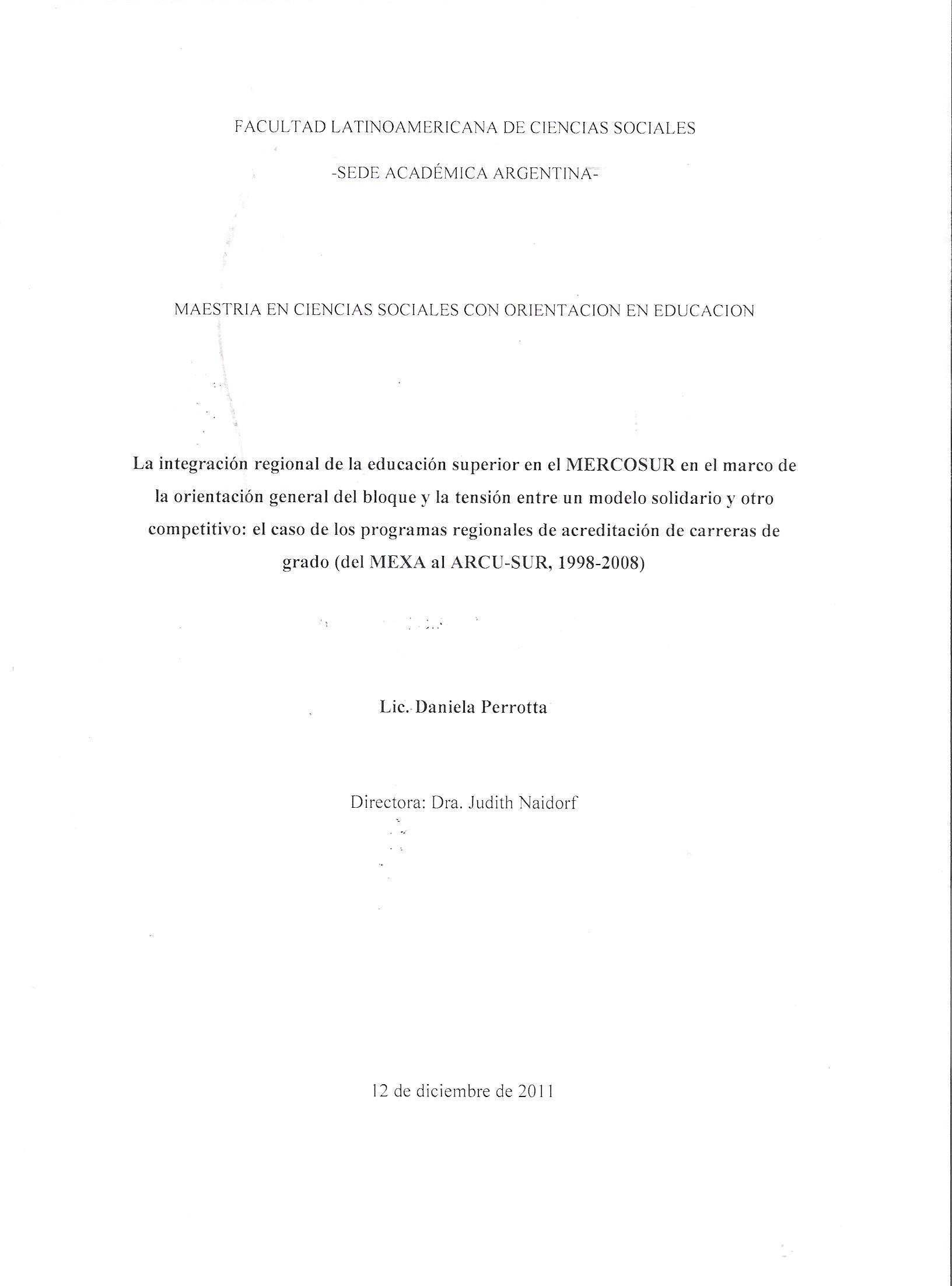 desentrañar ambos modelos de integración regional en el MERCOSUR, que han de llamarse, provisoriamente, integración regional de la educación superior solidaria y
