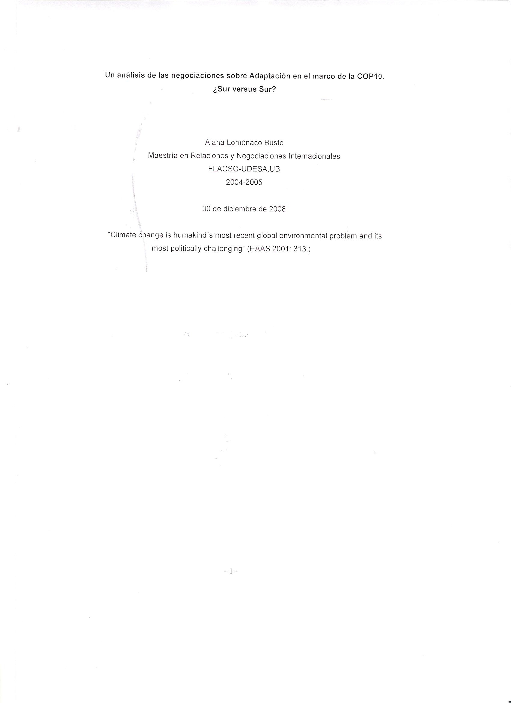 Un análisis de las negociaciones sobre adaptación en el marco de la COP10 : ¿Sur versus Sur?